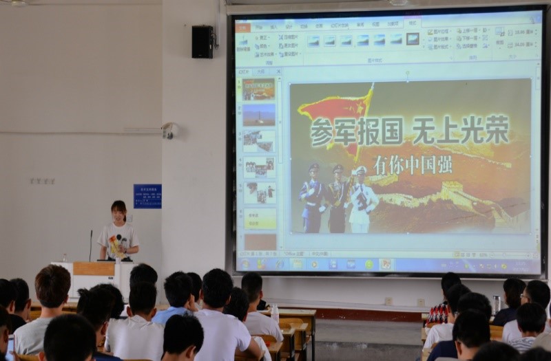 6月2日下午,伟德bv国际体育在五教四教室举办征兵宣传会。公司党委副书记贾喜环、辅导员王江波出席活动,公司一百多名同学参加此次活动。赵海燕担任主讲人。