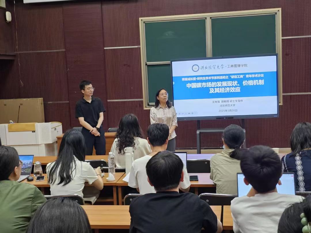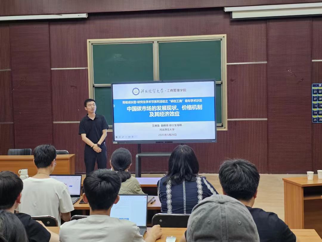 5月26日,青椒成长营·研究生学术节系列活动之“研在工商”科研学术讲座于MBA一教室举行,由河北师范大学商公司王继强副教授作题为“中国碳市场的发展现状、价格机制及其经济效应”的学术报告。会议由伟德bv国际体育经理李桂荣教授主持,公司青年博士教师及全体学术型研究生参加。