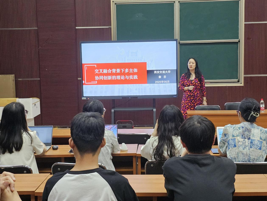 6月10日,青椒成长营·研究生学术节系列活动之“研在工商”学术讲座于MBA一教室举行,由西安交通大学公管公司章芬副教授作题为“交叉融合背景下多主体协同创新的理论与实践”的学术报告。会议由伟德bv国际体育张羽飞博士主持,公司青年博士教师及全体学术型研究生参加。