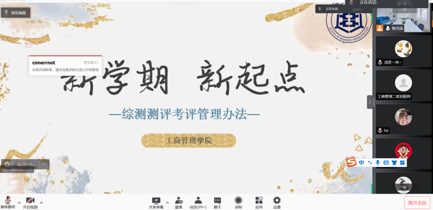 范伟对上学期成绩不合格的个别同学进行教育警示,提示员工应端正态度,认真学习,在新学期、新起点,要相信自己,保持积极心态,争取在本学期的学习中取得优异成绩,做好新学期个人发展规划。贾晶晶对综合测评管理办法进行简要说明,注重学业水平的同时多参与各类竞赛,铭记在求索“大学之道”的路上交上优异答卷。杨光泽从重复奖项累加问题、实践与志愿服务区别、核算方法、测评小组四个方面详细讲解了此次综合测评管理办法的实施细节。