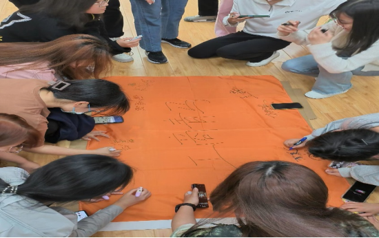 班旗是一个班级的象征,表明了班级的班风班貌,是班级的精神图腾!在最后一项活动中,全体青马学员在空白的旗帜上签上自己的名字,齐心协力绘制班级图腾,用铮铮誓言和实际行动展示出青年独特的风采与信念。