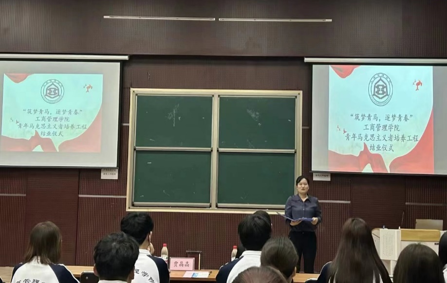 首先,贾晶晶对青马班顺利结业表示热烈祝贺,对组织筹备青马课程的工作人员表示由衷感谢。随后,贾晶晶对同学们提出要求和希望:第一,学员们应坚定理想信念,学习理论知识,提升自我修养;第二,要将理论知识运用到日常学习生活中,把实践经验和理论知识结合起来;第三,发挥青马学员的带头示范作用,弘扬党的二十大精神和中华优秀传统文化,努力成长为不负党和国家期望的栋梁之才。