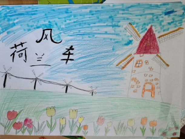 在制作手工的过程中,我们分头行动,我负责材料准备和组件安装,小朋友负责制作出风车的形状。同时,我也在旁边指导小朋友,如何正确使用剪刀等。我们配合得很好,不到半个小时就完成了手工制作。接下来,我又向小朋友介绍了被誉为“风车之国”的荷兰,我们了解到荷兰之所以制造风车,是因为他们当地的地理环境:荷兰坐落在地球的盛行西风带,一年四季盛吹西风。同时它靠近大西洋,又是典型的海洋性气候国家,海陆风长年不息。这是一场我和小朋友的双向奔赴,我们共同完成了风车制作,我向小朋友介绍荷兰风车,小朋友给我带来一副绘画,我们共同成长,携手向前。