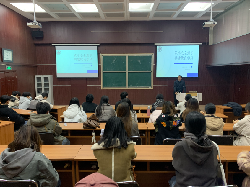 会议伊始,辅导员范伟围绕了近期校园火灾事故,强调了用电安全的重要性。他指出人身安全是“1”,失去了“1”,所有都是“0”。随后,班长张驰和崔美诺依次上台,带领同学们分别学习了防诈骗与犯罪、交通安全、防火防盗与紧急应对、心理健康与人际关系、学风问题与学风建设等内容。大家全程保持着高度的注意力和兴趣,纷纷表示今后将共同努力,构建一个更加安全和谐的校园环境,营造更优良的学习氛围。最后,班长崔美诺呼吁全体同学要持续不断地提高安全意识,提升学习素质,因为它们都非一日之功,需久久学习,形成习惯。