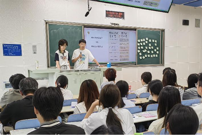 班会伊始,李瑞希同学邀请全体同学们在便利贴上写下了对“爱自己”的看法,并贴在了黑板上。班会第一部分首先向同学们介绍了什么是爱自己、爱自己的不同层面,让同学对什么是“爱自己”有了新的认识。然后,邀请同学们制作爱自己手册,分为自我接纳、自我关怀和自我边界三部分。第二部分是邀请全班同学共同玩名牌归队游戏,将自己的特点写在纸片上,随后将全班同学的卡牌打乱顺序,再次发给同学们,同学们需要找到对应的同学。游戏结束后,李瑞希向同学们提供了一些社交建议。最后一个部分是停止内耗,列举同学们生活中可能的内耗原因,并向同学们介绍了改善精神内耗的方法,如停止完美主义、停止纠结和停止设限。