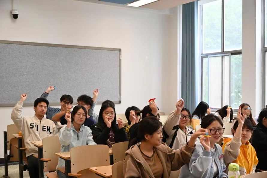 班会伊始,张思盈为同学们播放了一个“心理微课堂”短片作为导入,在带领同学们进入课堂的同时,通过短片这种灵活有趣的形式,使同学们学习到了更多心理健康知识,更加了解了自己多样化的情绪,同学们纷纷表示该短片在一定程度上提升了自己的心理健康意识。紧接着,张思盈组织大家进行了“优点轰炸空间”等游戏,引导同学们寻找身边人的优点并写在卡片上赠与对方,同学们积极地读出自己接收到的夸奖,该项活动极大地增强了同学们的自信心,也缓解了学习生活中焦虑的心理情绪。随后,心理委员为大家发放了许愿瓶以及彩纸,将给未来的一句话封存在许愿瓶中,将烦恼写在彩纸上,叠成纸飞机抛向远方,在留住积极情绪、丢掉消极情绪过后,同学们的脸上都洋溢起了灿烂的笑容。最后,张思盈对本次主题心理班会进行了全面总结,再次强调了心理健康对于个人成长和发展的重要性,鼓励同学们以更加积极的心态投入到今后的学习与生活中去。