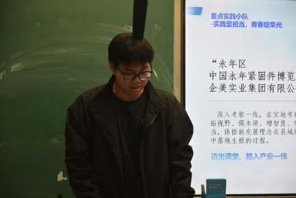 随后,青年实践团代表们依次展开分享,细致阐述了暑期社会实践期间的探索与收获。刘树状回溯从校园到基层的成长轨迹,以自身体悟激励学子躬身实践;袁盛杰直击乡村产业痛点,依托农产品电商推广案例,提出具有可行性的乡村振兴路径,彰显理论赋能的务实担当;宋泓霏则在政策宣讲、文化科普等志愿服务中深耕细作,以青春担当为基层发展注入力量。