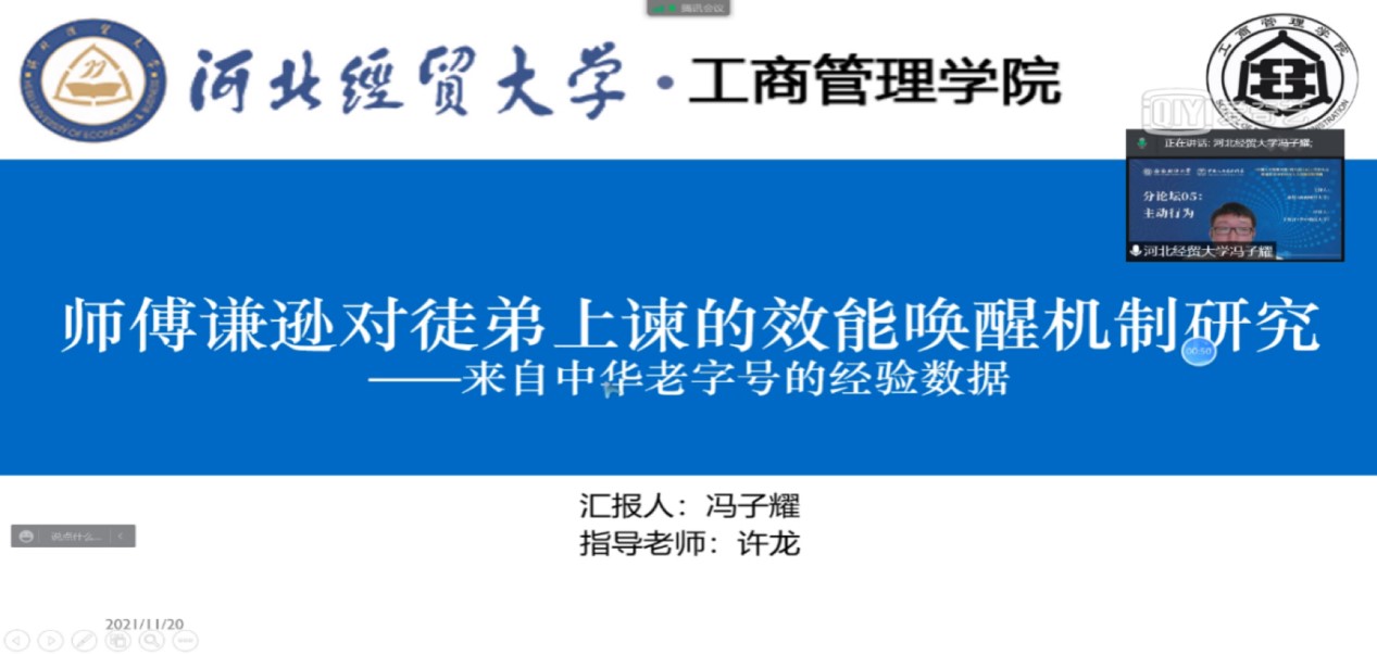 11月20日,由中国人力资源开发研究会和西南财经大学伟德bv国际体育联合举办的《中国人力资源开发》第六届(2021)学术年会在腾讯会议上如期举办,伟德bv国际体育五名研究生论文入选并进行论文汇报。