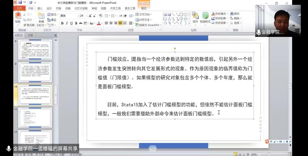 孟维福博士系统的介绍了中介效应模型及门限效应模型的原理、使用步骤和实现方式,并结合经典论文“互联网能成为中国区域创新效率提升的动能吗?”(中国工业经济,2019年第7期)讲解了如何在学术研究中应用,详细分析了门限模型论在该论文中使用的背景、解决的问题及起到的效果。