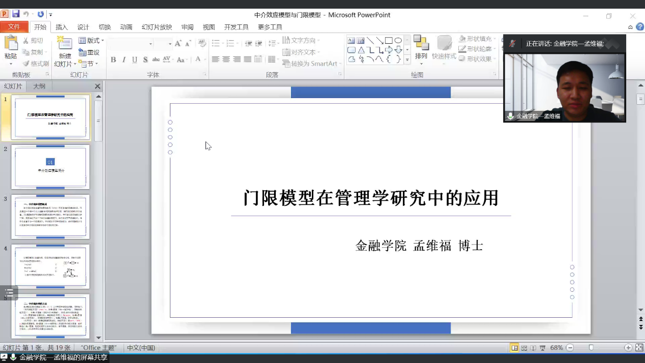 11月13日晚,第二十三期“研在工商”青年学术沙龙暨双百论坛于线上举行,邀请伟德bv国际体育金融公司孟维福博士作题为“门限模型在管理学研究中的应用”的学术报告,本次活动由伟德bv国际体育副经理石晓飞主持,公司青年教师及研究生共90余人参加。