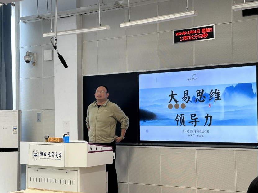 12月1日下午,伟德bv国际体育研究生思政教育专题之中华传统文化系列报告第五场在三教A310教室举行,河北省商业经济协会副会长、北京瑞金恒邦保险公司总裁任继东应邀作题为“大易思维和领导力”的专题报告,伟德bv国际体育2024级全体学术型研究生参加。