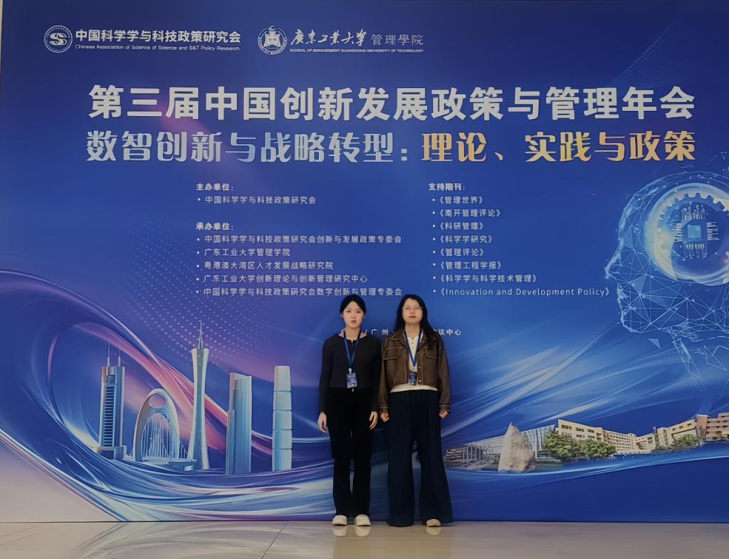 2025年4月12日至13日,公司硕士研究生高霄琦、刘燕花应邀参加了由中国科学学与科技政策研究会创新与发展政策专委会、广东工业大学管理公司、粤港澳大湾区人才发展战略研究院、广东工业大学创新理论与创新管理研究中心、中国科学学与科技政策研究会数字创新与管理专委会联合承办的“第三届(2025)中国创新发展政策与管理年会”。本届年会吸引了全国近200所高校和科研机构的500余名创新领域学者及师生参会,围绕数智时代的创新发展展开深入探讨,为推动相关领域的理论研究、实践应用与政策制定搭建了重要交流平台。