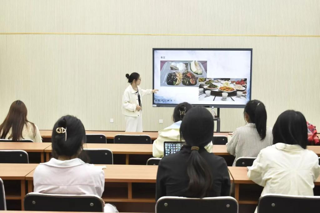 分享会伊始,张瑞钶介绍了新疆实习的工作核心,她围绕当地旅游产业展开叙述,包括参与旅游一体化发展座谈会,在新和县文旅局完成调研报告设计打印、宣传视频拍摄,并积极投身组织部各类活动。随后,她从生活保障与文化风貌两个方面分享了实习体验。在生活方面,当地组织部提供饮食、住宿、安全全方位保障,生活物资配备齐全且满足个性化需求。在文化方面,通过生态保护成果、村民文化活动、特色民族服饰与非遗乐器表演等,展现当地独特人文与生态魅力。最后,她解析了新疆发展机遇,指出人才引进与企业招聘双重就业路径,并分享了实习期间的特色收获与实践贡献,鼓励大家关注新疆发展。
