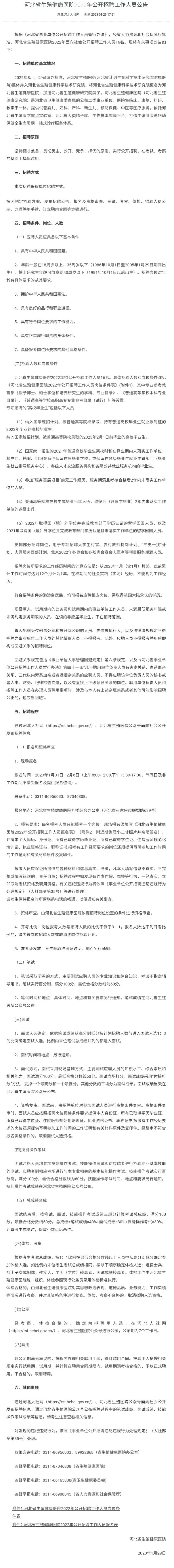 河北省生殖健康医院2022年面向社会公开招聘工作人员16名。具体招聘人数和岗位条件详见↓↓↓