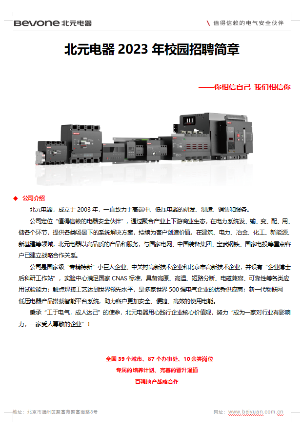 校园招聘早知道(二百七十二)||2023年北元电器招聘简章