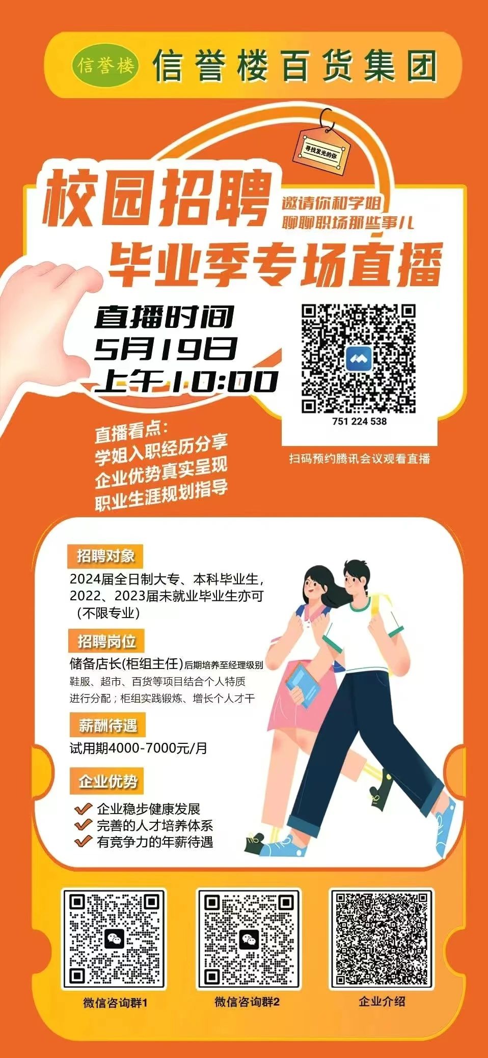 校园招聘早知道(五百七十二)‖信誉楼百货集团毕业季专场直播预告