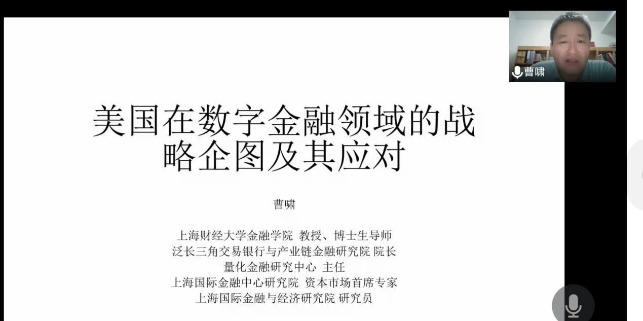 9月5日晚,伟德bv国际体育邀请上海财经大学金融公司经理助理、上海财经大学量化金融研究中心主任、博士生导师曹啸教授作题为《美国在数字金融领域的战略企图及其应对》的学术报告。报告以腾讯会议形式进行,来自校内外近300名师生和社会人士参加,伟德bv国际体育经理李桂荣教授主持了报告会。