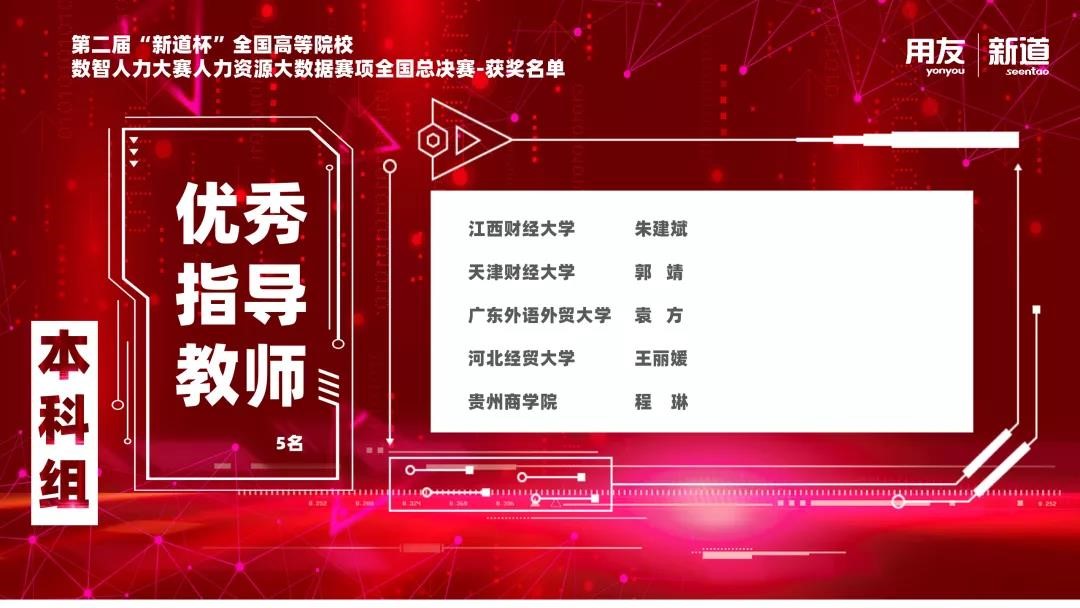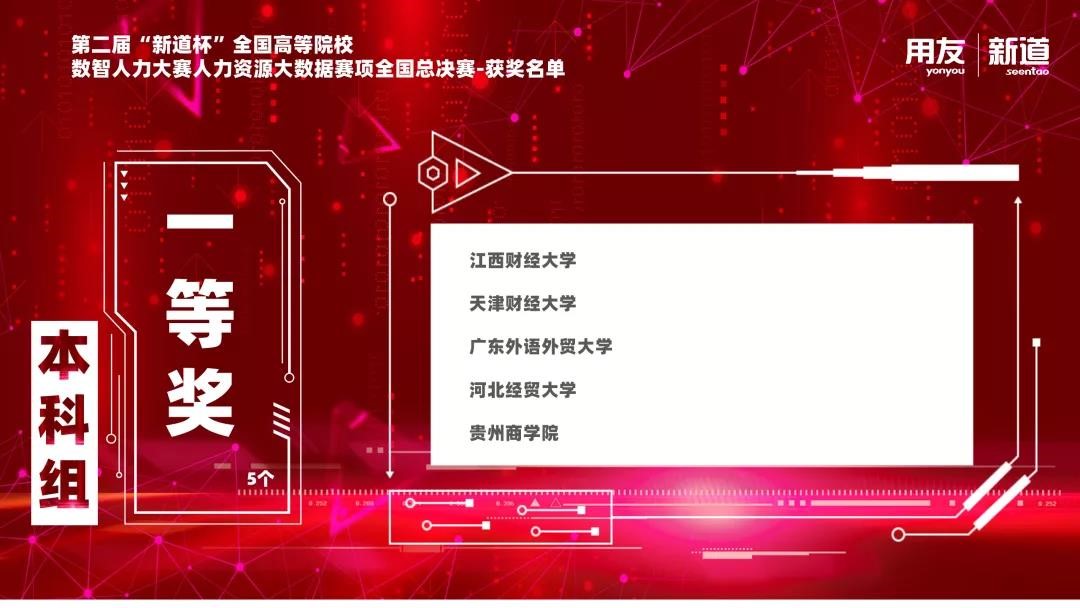 2021年11月21日,第二届“新道杯”全国高等院校数智人力大赛(人力资源大数据赛项)全国总决赛圆满结束。本届大赛由中国人力资源开发研究会智能分会主办,江西财经大学、辽宁经济职业技术公司承办,新道科技股份有限公司提供技术支持。本次大赛通过网络平台的形式展开,来自全国各地的52支本科队伍及24支高职队伍在省赛中脱颖而出,跻身全国总决赛。经过激烈比拼,最终,由公司人力资源管理(中外合作办学)专业4名同学杨阳、武若璇、吴宛颐、张金诺组成的参赛队伍荣获大赛本科组一等奖,指导老师王丽媛荣获大赛本科组“优秀指导教师”。