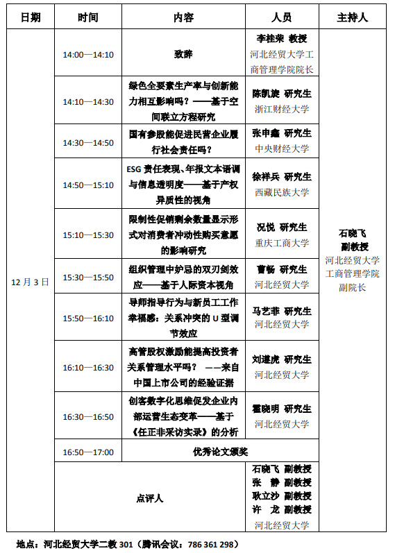 伟德bv国际体育“研在工商”研究生学术论坛(2021) 会议议程