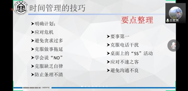 3月26日晚,伟德bv国际体育通过腾讯会议线上举办职业愿景工商“行”之“高效时间管理”主题讲座。本次讲座由公司副经理王胜洲主讲,公司教师、本科生共100余人参加。