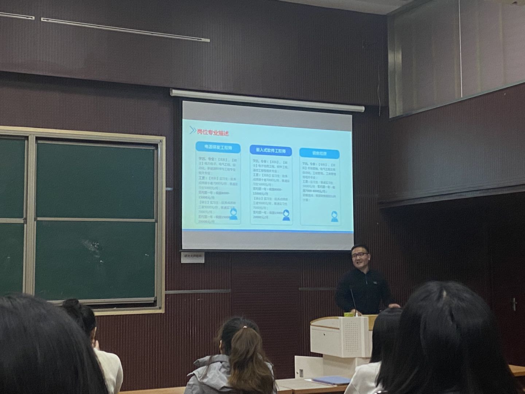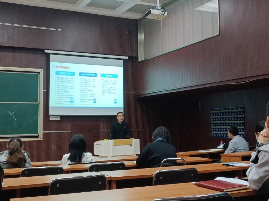 活动伊始,宣讲人向同学们简单介绍了公司的发展历程、企业文化以及从事的业务,并以播放本公司宣传片的形式,促使员工们更深入了解公司。随后,分别从职业发展与福利、需求岗位等方面,对公司进行全方位多角度的介绍,帮助企业和员工之间进行双向选择。最后,企业宣讲人提到公司的员工福利和人才发展通道,并进一步对企业的需求岗位和岗位选择进行描述,说明公司的面试流程及简历的投递方式,欢迎同学们踊跃报名。