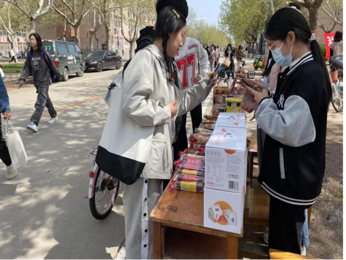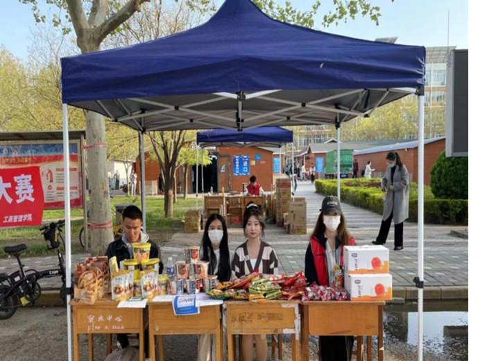 此次线下展销会中,同学们用自己所学专业知识和生活经验将手中货品向路过的同学进行推销,各显神通:化身社交大神,吆喝拉客;占据有利位置,利用人群优势;优化商品摆放位置,让人眼前一亮,购物欲油然而生;更有人组建线上团购群,为自己发展稳定客户团体……该活动有效的激发了高校老员工创业就业活力,引领老员工通过营销实践,提高自主创业意识和能力。