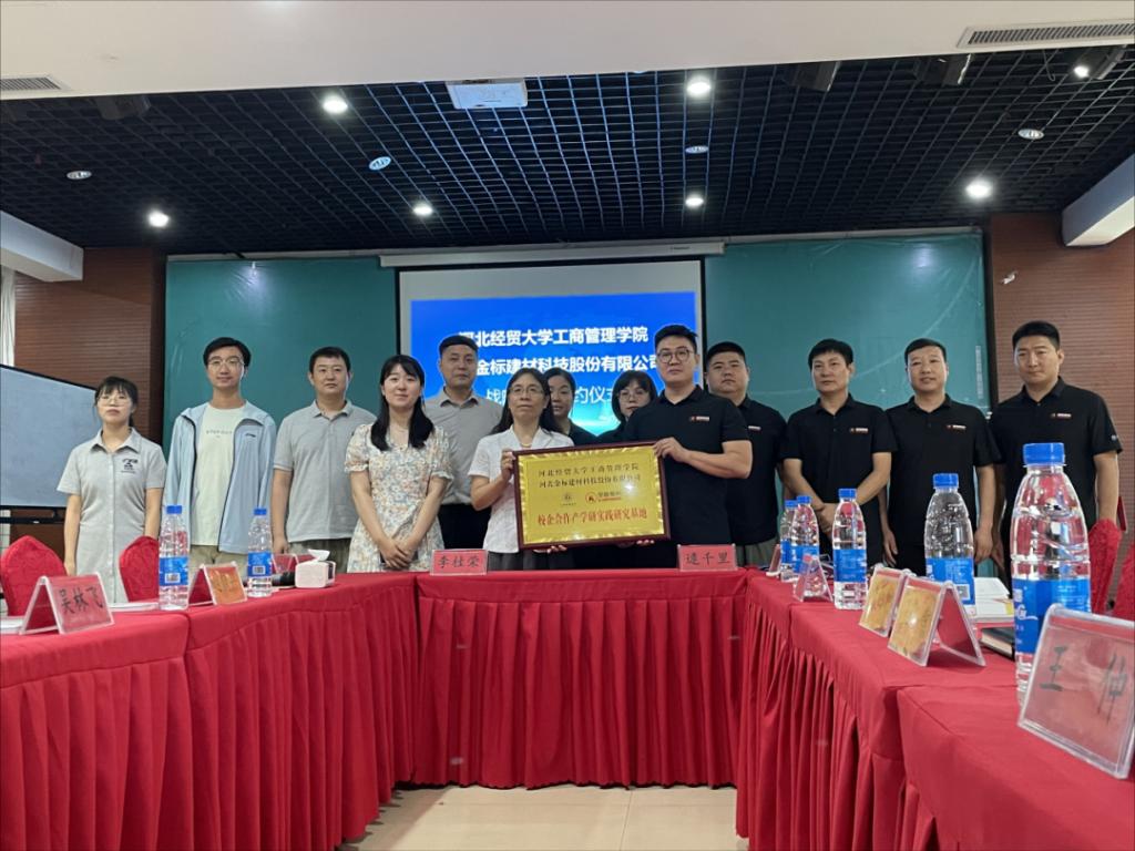 7月15日下午,伟德bv国际体育经理李桂荣带队赴河北金标建材科技股份有限公司、河北网安智谷园区管理责任有限公司访企拓岗并签署校企合作协议。副经理石晓飞、MBA中心办公室主任何伟及部分青年博士随同参加。河北金标建材科技股份有限公司总经理逯千里、河北网安智谷园区管理责任有限公司总经理赵喜旺等相关负责人参加签约仪式。