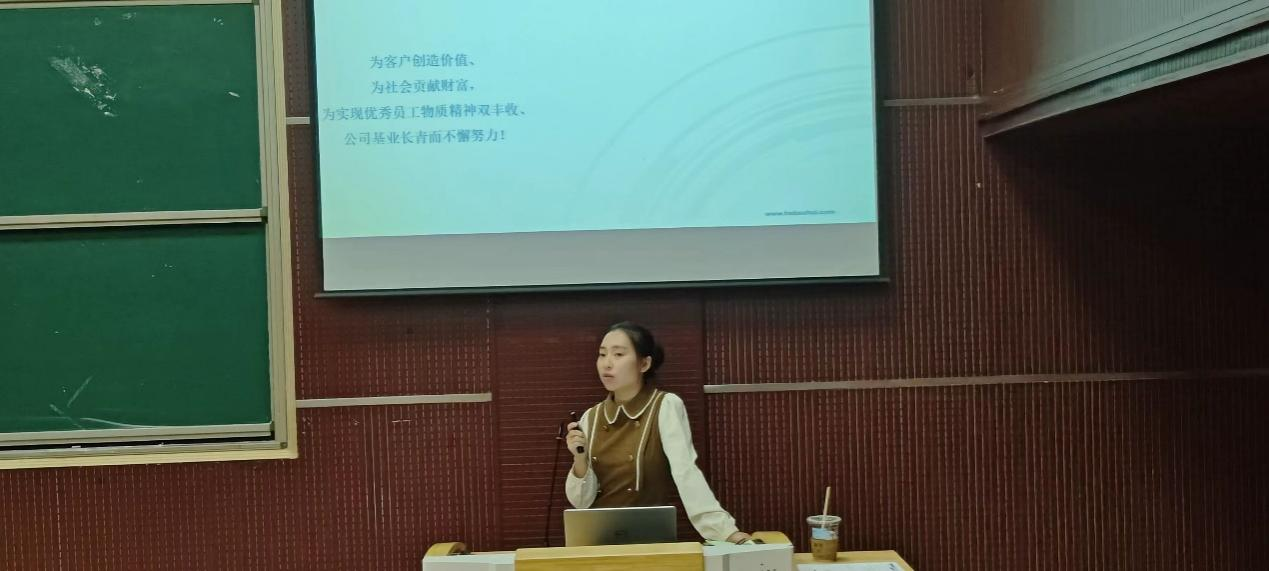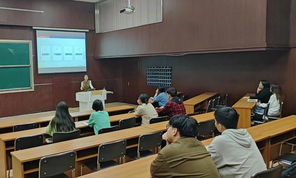 活动伊始,白少英为同学们播放了以“一起向未来”为主题的企业宣传片,以此来介绍公司的相关产品和企业竞争力,充分展现了公司光明的发展前景。随后,白少英从“企业简介、平台福利、招聘岗位、应聘方式”四个方面对公司进行详细地介绍,重点讲解了公司良好的文化环境、丰厚的员工待遇及人才需求状况,使同学们对河北旭辉电气股份有限公司有更清晰深刻的了解。最后,她与毕业生一对一交流,耐心、细致地解答员工的困惑,帮助同学们理清自己的职业规划以及发展方向。