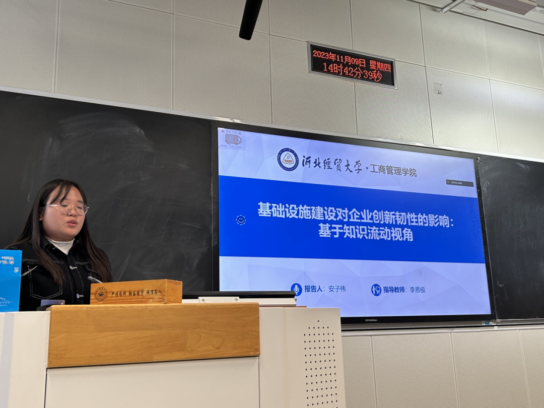 汇报人安子伟以“基础设施建设对企业创新韧性的影响:基于知识流动视角”为题,从基础设施建设和新型基础设施建设两个维度考察了基础设施建设对企业创新韧性的影响及其作用机制。研究发现基础设施建设对企业创新韧性具有显著促进作用,但是这种促进作用存在一定程度的异质性。基础设施建设主要通过促进“显性知识”流动和“隐性知识”流动来提升企业创新韧性。知识产权保护、政府支持以及创新文化能够正向调节基础设施建设对企业创新韧性的促进作用。