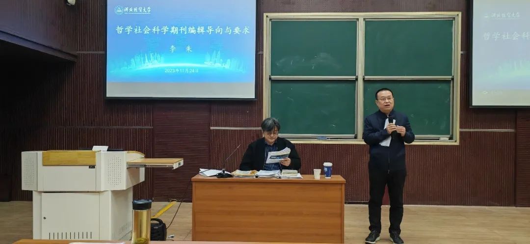 11月24日上午,伟德bv国际体育邀请《新华文摘》编审、专栏责编李朱作题为“哲学社会科学期刊编辑导向与要求”的学术报告。报告会由副董事长田学斌教授主持,学报编辑部、伟德bv国际体育师生60余人参加。
