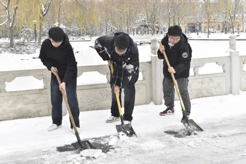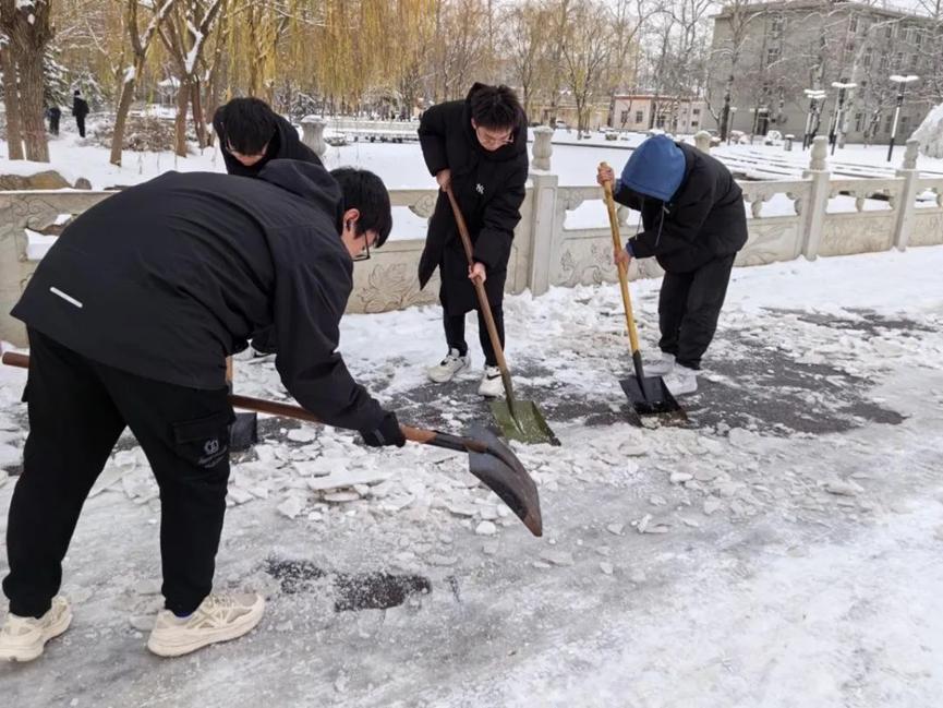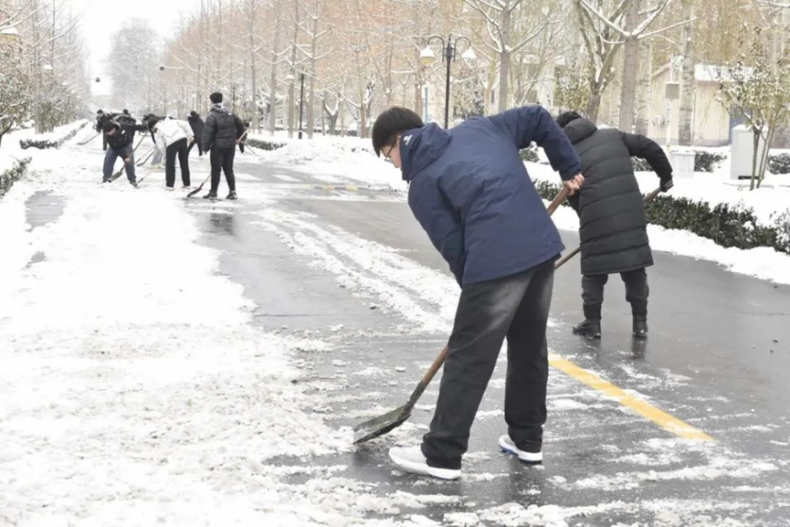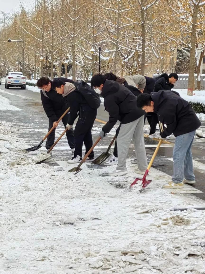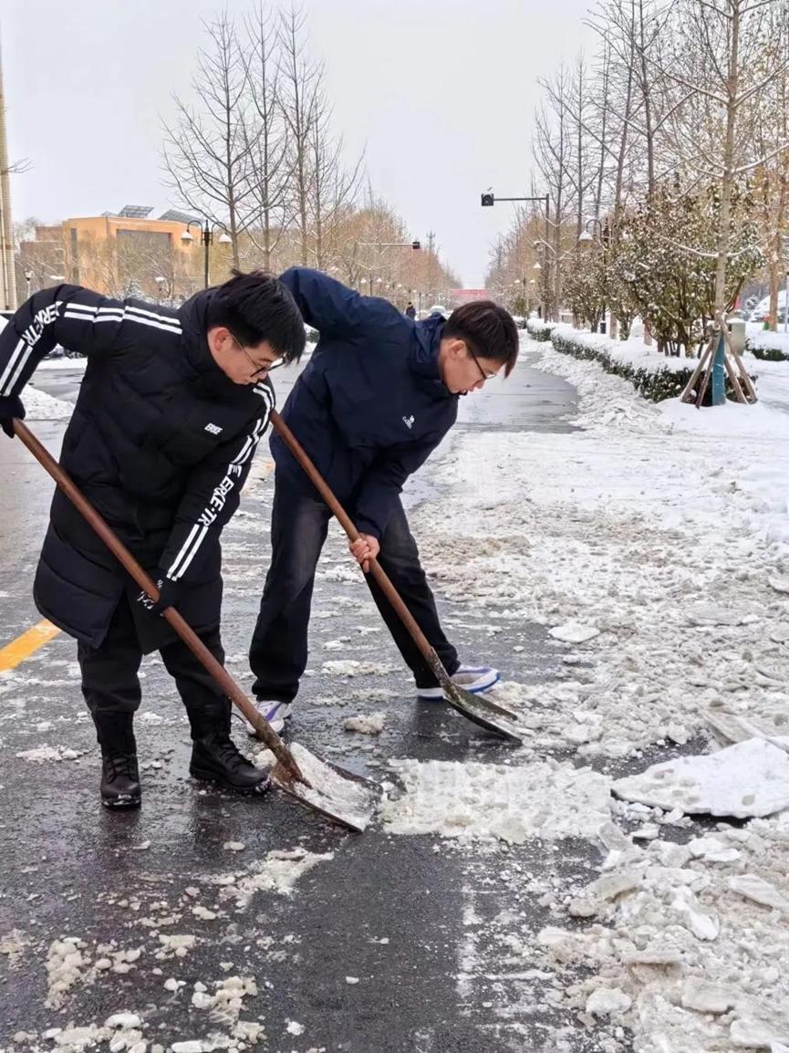 为促使道路通畅,消除积雪带来的校园安全隐患,保障同学们的出行安全,锻炼员工们的团结协作能力,培养劳动奉献精神,彰显新时代老员工的精神风貌。12月15日,公司员工积极参加“以劳树德,知行合一”扫雪除冰活动。