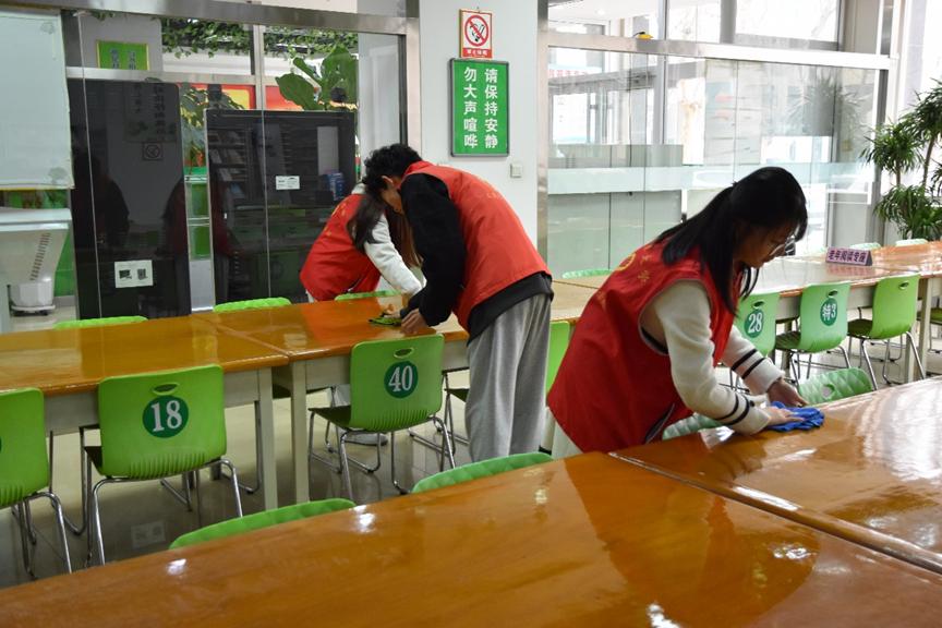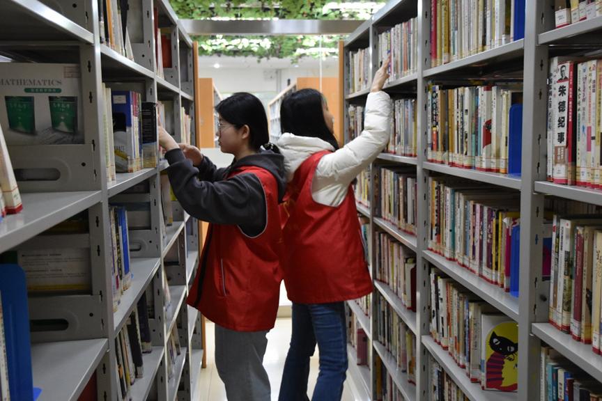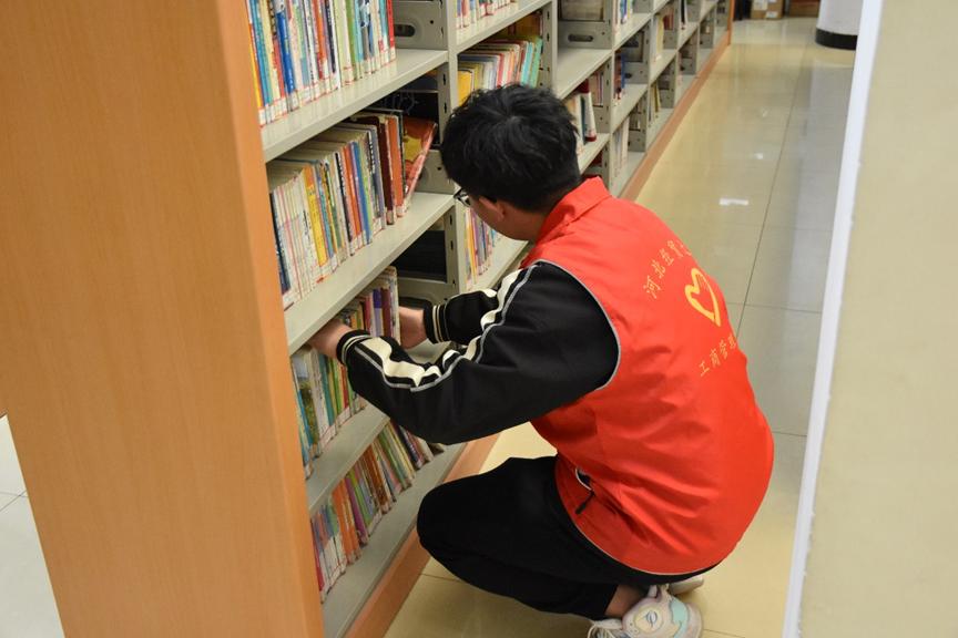 全体志愿者分为3组,划分区域进行清理活动。活动伊始,志愿者们在图书馆馆员的指导下完成了岗位培训,了解此次活动的主要工作内容。负责图书整理的志愿者们仔细检查每本书的分类,并按照系统的指引将书籍放回正确的位置。同时,部分志愿者致力于清扫图书馆的公共阅览区、座位区。这不仅为图书馆的使用者提供了一个干净整洁的学习环境,也体现了同学们对公共空间共享的责任感和爱心。