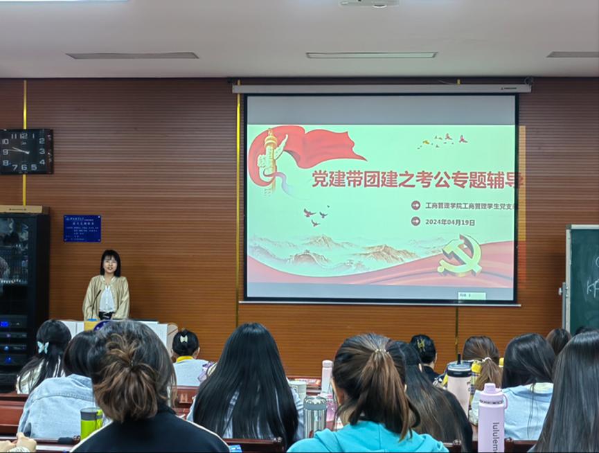 为充分发挥党建对团建的引领作用,激励广大青年员工立志成才,为实现伟大中国梦贡献青春力量,4月23日,工商管理员工党支部开展了“党建带团建”之考公专题辅导。此次活动由专职组织员宋欣策划主持,工商管理员工党支部优秀党员代表和优秀积极分子代表、2021级人力资源管理(中外合作办学)专业全体同学参加。