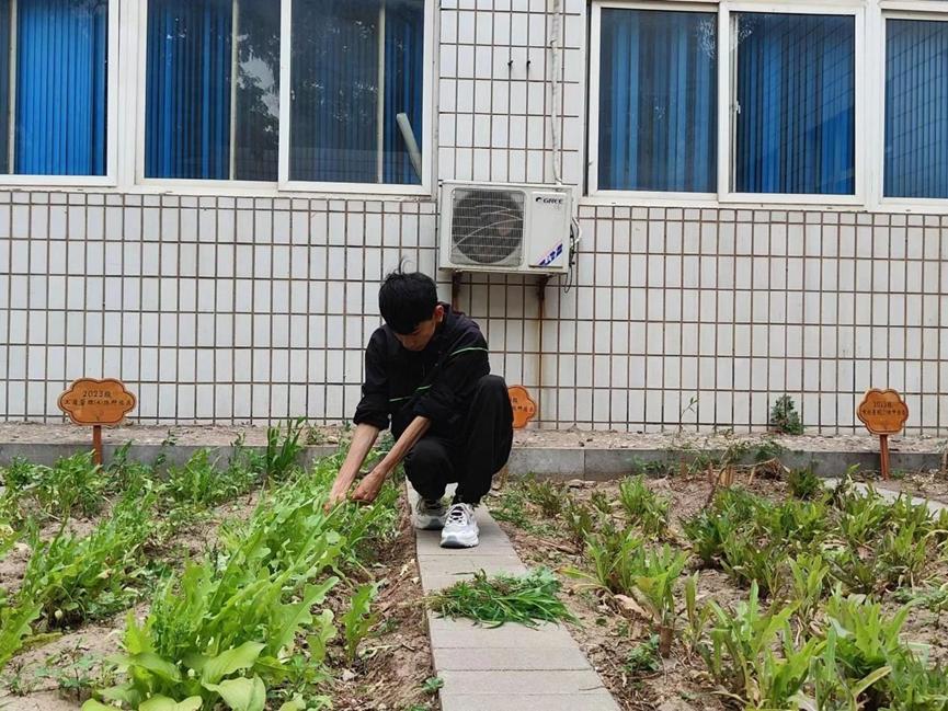 同学们定期会来到劳动教育实践基地,细心地观察着蔬菜的生长情况,确保每一棵幼苗都能得到充足的水分。他们有的蹲下身子,用手轻轻地将杂草连根拔起,助力蔬菜的成长;有的清扫种植园内外的垃圾和杂物,维护种植园的干净和整洁。阳光洒在他们的脸上,映照着他们专注而充满期待的神情,仿佛在为这片充满生机的土地绘制一幅动人的画卷。