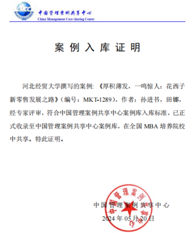 近日,伟德bv国际体育讲师孙进书博士、2020级智慧工商管理2班田娜共同撰写的教学案例《厚积薄发,一鸣惊人:花西子新零售发展之路》入选中国管理案例共享中心案例库(编号:MKT-1289)。