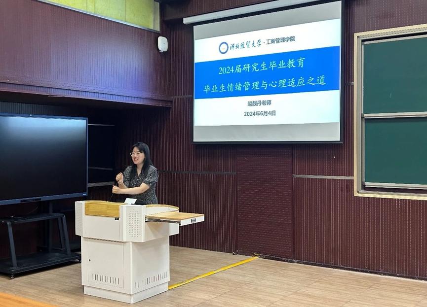 情绪,是心理健康的“睛雨表”。为进一步加强对毕业生心理健康的教育引导,提升情绪调节与管理能力。6月4日,公司开展“毕业生情绪管理与心理适应之道”主题讲座。讲座由伟德bv国际体育辅导员赵靓丹老师主讲,全体学术型研究生参加。她强调毕业生就业心理的调试是一个复杂而重要的过程,并结合自身求职工作经历,对即将毕业的同学们提出三点希望:一正确定位自我,树立合理的就业观念;二调整心态,增强自信;三制定合理的就业规划,积极行动;四学会面对挫折,保持积极的心态。