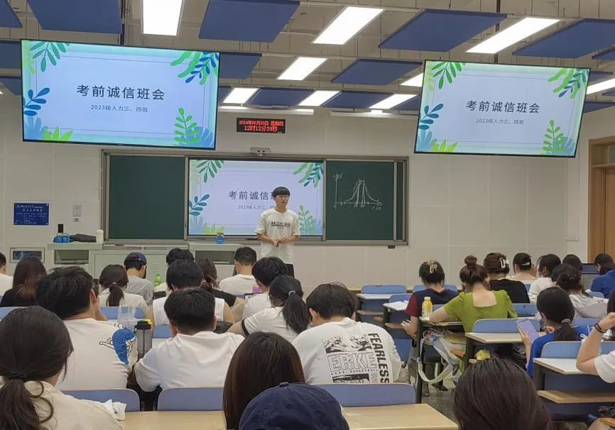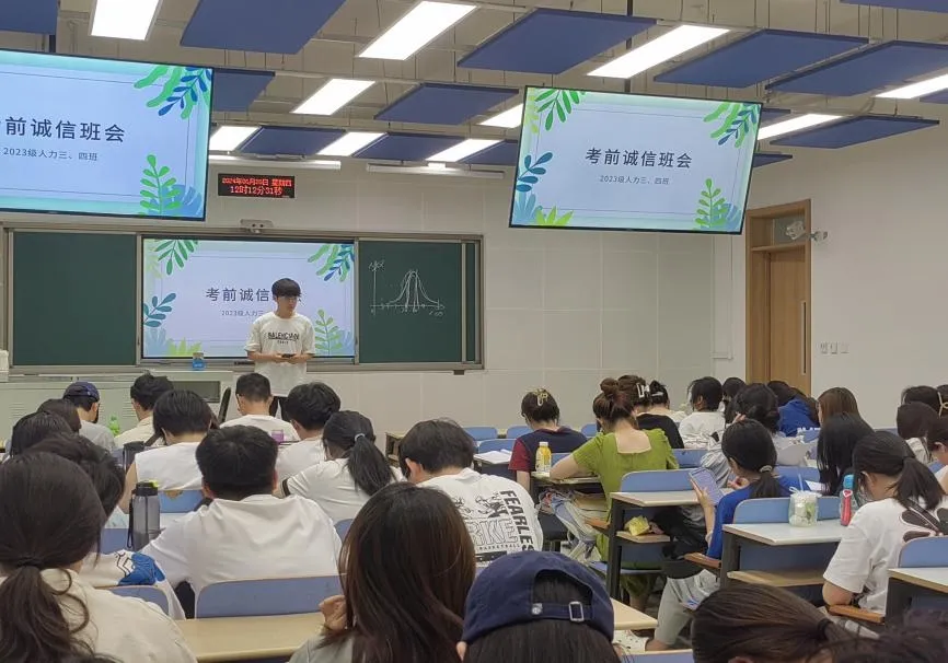 为了迎接即将到来的考试周,加强同学们的诚信意识,营造公平公正、诚实守信的考试环境,6月20日,伟德bv国际体育2023级人力资源管理四班开展以“诚信应考新风尚”为主题的班会活动。本次班会由班长王赫主持,辅导员王晓东及2023级人力资源管理四班全体同学参加。