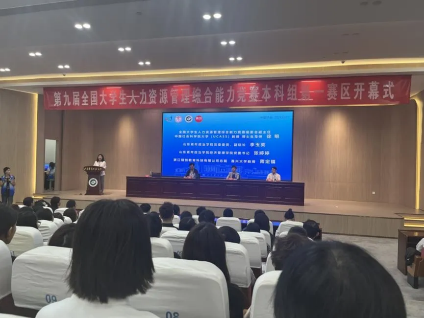 本次区域赛有来自北京、河北、内蒙古、山东、山西和天津6个省、市、自治区的383支参赛队伍参与。本科组分为线上和线下两个环节,其中线上环节分为“HR综合知识测评”和“HR模拟经营”两个模块,线下环节进行“HR模拟实战”。HR综合知识测评采用团队赛的形式,使用竞赛官网在线进行答题,主要从人力资源规划、招聘与甄选、培训与开发、绩效管理、薪酬管理、员工关系管理模块出发,结合案例对重要知识点进行考核。采用分组对抗与模拟经营的方式,各参赛队组建不同的公司,基于同一案例背景,通过《人力资源管理智能仿真与竞赛对抗平台》软件操作进行对抗竞争。对软件内置的人力资源规划、工作分析中心、招聘与甄选中心、培训与开发中心、绩效管理中心、薪酬管理中心、员工关系管理中心、产品中心八个模块进行操作,实现人力资本投资回报率和人力价值提升。HR 职业实战主要针对企业提供的真案例、真问题、真场景、真需求中的企业高级人员招聘、绩效反馈面谈、薪酬争议、劳动争议、HR数字化设计等核心职业情景,选择相应选题方向后,结合人力资源管理专业知识,通过PPT答辩的方式进行展示。