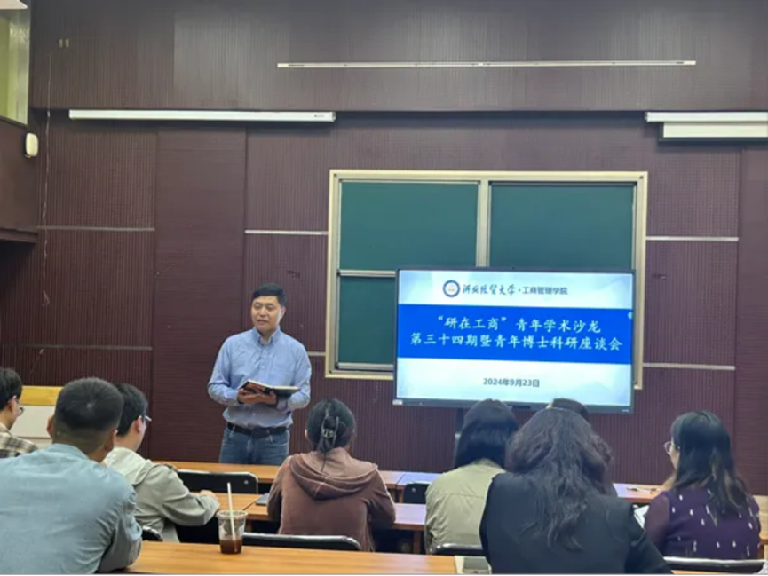 9月23日,第三十四期“研在工商”青年学术沙龙暨青年博士科研座谈会于MBA一教室举行。会议由伟德bv国际体育经理李桂荣主持,副经理石晓飞及公司青年博士教师参加会议。