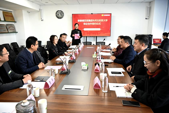 11月27日,工商管理公司党委书记张霖、经理李桂荣带队赴信誉楼百货集团有限公司参加校企合作签约暨“党建联创共建基地”“产教融合实践创新基地”揭牌仪式,副经理石晓飞、专任教师王书玲、就业联络员赵靓丹随同参加。信誉楼百货集团有限公司副总裁许胜利,沧州区域总经理张勇,人力资源总监侯党芸,人才发展部经理郗丽娜,公司员工:食品安全部总经理计彦敏、物流总经理曹军、培训BP经理王鹤、商公司项目经理贾启慧出席本次仪式。