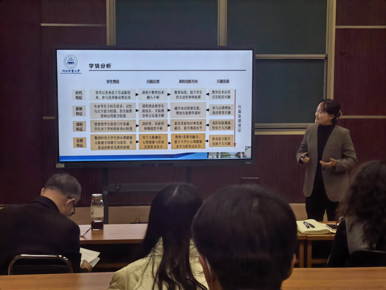 陈振鹭老师深入剖析了《运营管理》课程的教学创新思路,并从客户细分、价值主张、渠道通路等8个维度全面展示了教学思考与创新举措。陈老师阐述了“以员工为中心,以能力培养为目标,以智慧课堂为载体,以创业教育为手段,以课程思政为舵手”的教学理念,将理论知识与管理实践紧密结合,使课程更具吸引力和实效性。