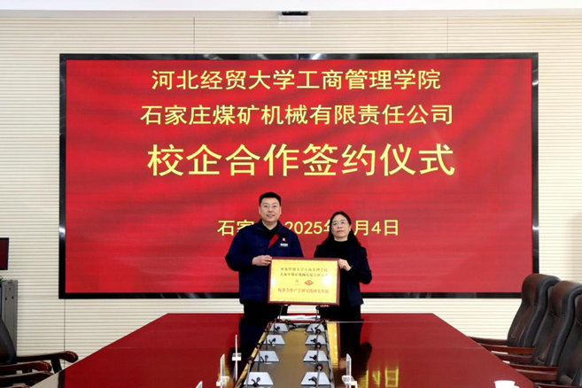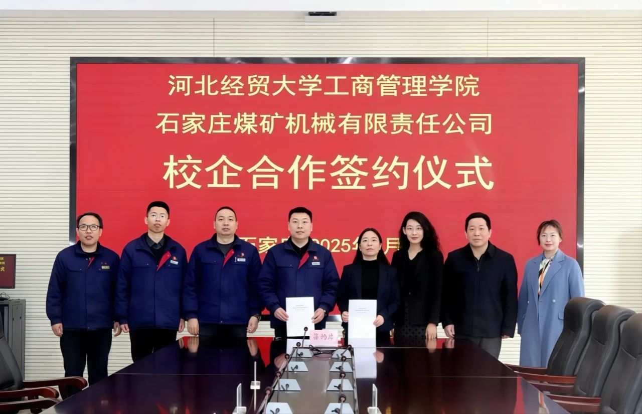 3月4日,伟德bv国际体育经理李桂荣带队赴石家庄煤矿机械有限责任公司参加校企合作签约暨“校企合作产学研实践研究基地”授牌仪式,副经理封雪韵、工商管理教工党支部书记郝洪文和工商管理系主任郑展随同参加。石家庄煤矿机械有限责任公司副董事长、总经理朱玉强,副总经理张峰涛,总经理助理兼组织部长郝文超和市场服务部部长张宏伟等出席仪式。