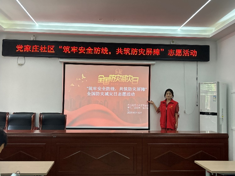 为增强社区居民防灾减灾意识,提升应急避险能力,助力平安社区建设,在"5·12"全国防灾减灾日当天,伟德bv国际体育联合法公司、经济公司组建志愿服务队,组织20名师生志愿者前往新华区赵陵铺街道党家庄社区,开展“筑牢安全防线,共筑防灾屏障”志愿服务活动。