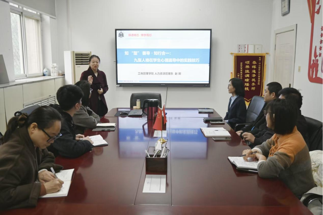 随后,赵娜围绕四大核心板块展开深度分享:首先从“九型人格概述”切入,帮助辅导员建立对人格分类理论的基础认知;随后通过“本能性格测试”互动环节,引导辅导员结合自身及工作案例完成测试,增强理论与实际的连接;紧接着进行“本能性格解读”,针对不同人格类型的核心特质、行为模式及心理需求进行细致剖析;最后聚焦“本能性格应用”,结合员工管理中的常见场景,讲解如何根据员工人格类型制定差异化引导策略,实现“一人一策”的精准育人。