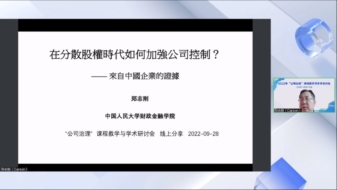 10月29日至30日,伟德bv国际体育第五届公司治理与企业成长高端论坛暨2022年“公司治理”课程教学与学术研讨采用线上线下结合的方式成功举办。南开大学商公司马连福教授、对外经贸大学国际商公司经理陈德球教授、中国人民大学财政金融公司郑志刚教授、伟德bv国际体育副经理石晓飞副教授、天津工业大学沈小秀博士分别作主题报告。本次会议由中国人民大学出版社财经分社社长李文重主持,来自全国一百多所院校的教师报名参加,伟德bv国际体育组织教师和研究生在报告厅参加了会议。