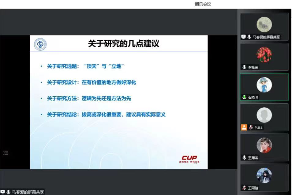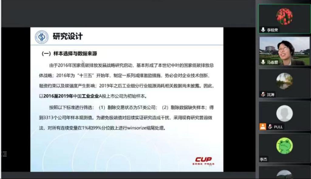11月10日晚,伟德bv国际体育邀请中国石油大学经济管理公司副经理、博士生导师马春爱教授在线作题为“政府创新补助对工业企业碳强度影响路径研究”的学术报告。报告由伟德bv国际体育经理李桂荣主持,公司教师及研究生100余人参加。