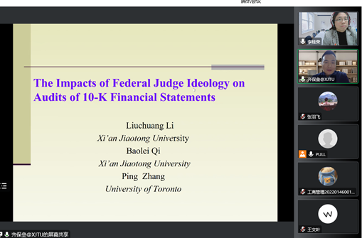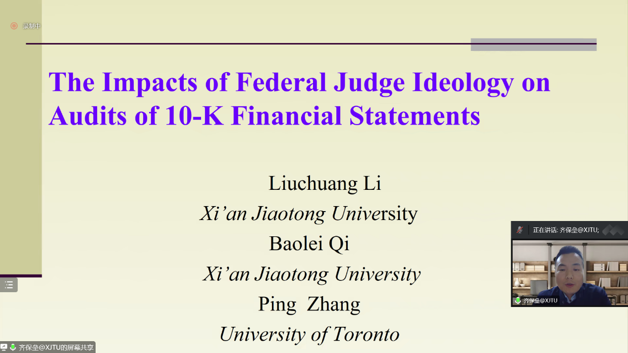 11月12日晚,伟德bv国际体育邀请西安交通大学管理公司会计与财务系教授、博士生导师、教育部青年长江学者齐保垒教授在线作题为“联邦法官政治倾向对财务报表审计的影响研究”的学术报告。报告由伟德bv国际体育经理李桂荣主持,公司教师及研究生150余人参加。