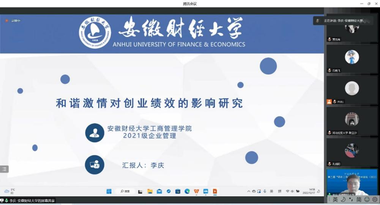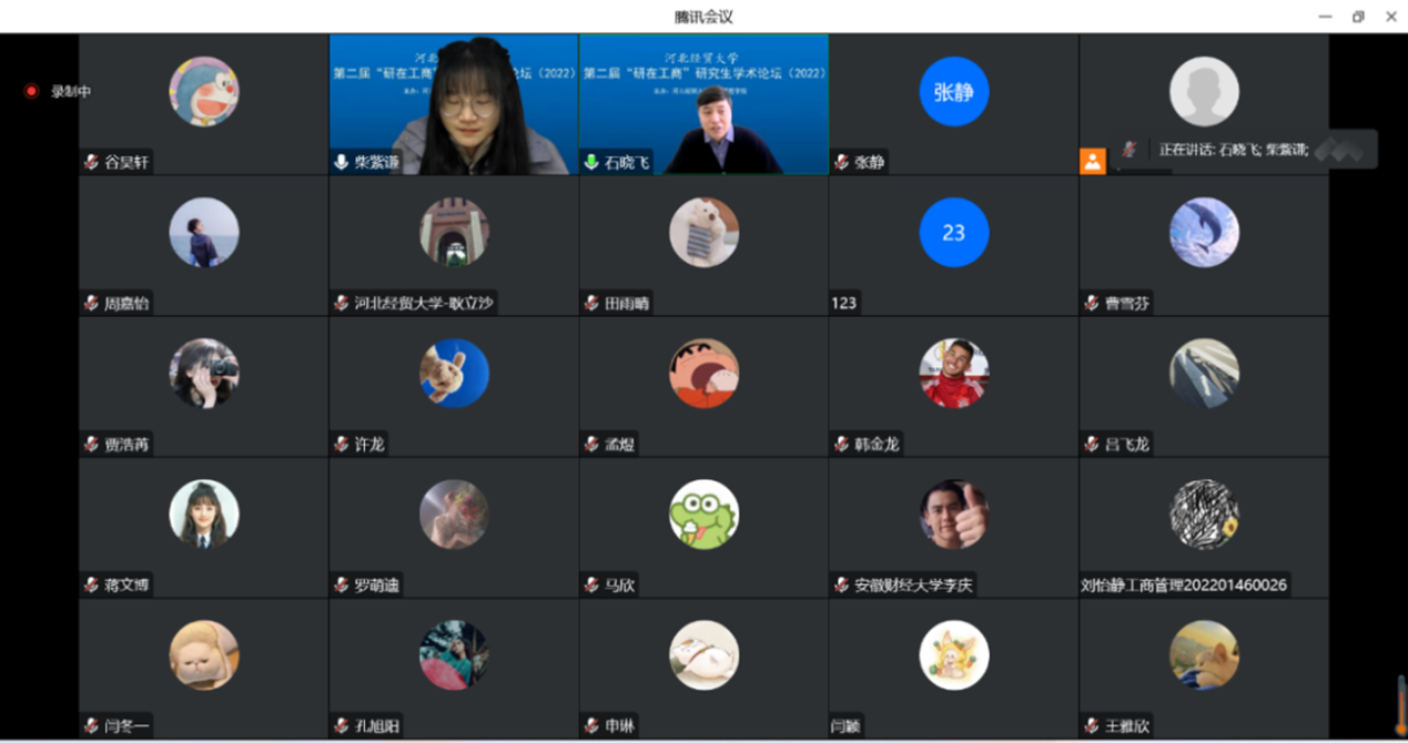 12月17日下午,由伟德bv国际体育主办的第二届伟德bv国际体育“研在工商”研究生学术论坛以腾讯会议形式成功举办,伟德bv国际体育经理李桂荣教授出席并致辞。论坛由伟德bv国际体育副经理石晓飞主持,石晓飞博士、张静博士、耿立沙博士和许龙博士出席担任评委,本次论坛包括教师及研究生共100余人参加。