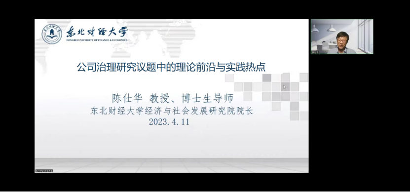 4月11日晚,伟德bv国际体育邀请东北财经大学经济与社会发展研究院经理、博士生导师陈仕华教授在线作题为“公司治理研究议题中的理论前沿与实践热点”的学术报告。报告由伟德bv国际体育副经理石晓飞主持,公司教师及研究生230余人参加。