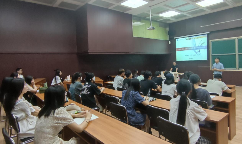 报告伊始,马金龙解释了研究复杂网络的原因,指出复杂网络是本世纪涌现的新现象,应用涉及信息技术、经济管理、国际贸易等多个领域。首先,揭示了复杂系统与复杂网络的关系,指出复杂网络是构成复杂系统的基本结构,每个复杂系统都可以看作是单元或个体之间的相互作用网络。其次,通过列举“格尼斯堡七桥问题”和“小世界实验”等例子,详细阐述了复杂网络研究的历史,指出复杂网络研究涉及因特网、电力网、朋友关系网、科学引文网、交通运输网络等。再次,指出计算设备和迅猛发展的Internet是近年来复杂网络取得突破性进展的主要原因。信息技术和经济管理等多学科之间的相互交叉使得研究人员拥有不同类型的数据,有利于揭示复杂网络的特性和共性。最后,详细介绍了自己的研究成果将国际粮食贸易与复杂网络研究相结合,将复杂网络研究嵌入了管理学领域的实例,并指出高阶网络、时序网络、复杂网络与机器学习结合等是当下的热点问题,老师和同学们可以从这些角度出发进行相关研究。